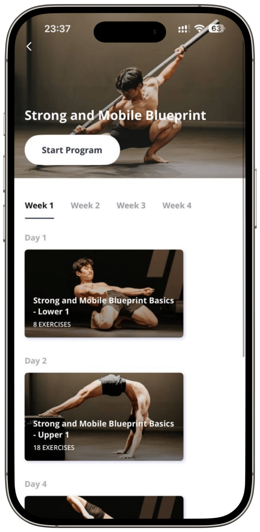 Visit the Strong & Mobile Academy page, where all of our programs, protocols, and coaching systems are organized in one place.